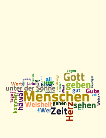 Auf dieser Seite gibt es einen Überblick über alle Bibelclouds. Basis für diese Grafiken war die Bibel in gerechter Sprache, 3. Auflage, 2007, Copyright © 2006 by Gütersloher Verlagshaus, Gütersloh, in der Verlagsgruppe Random House GmbH, München.